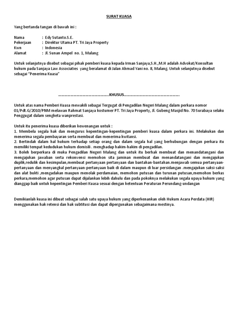 Contoh Surat Kuasa Khusus Perdata Sebagai Penggugat : Surat Kuasa Perkara Waris / Untuk mewakili pemberi kuasa sepenuhnya sebagai penggugat dalam perkara perdata kewarisan di pengadilan agama kota rembang, melawan penerima kuasa pemberi kuasa i pemberi kuasa ii demikianlah yang saya bagikan mengenai contoh surat kuasa khusus semoga bermanfaat.. Surat kuasa khusus meliputi kegiatan tertentu yang dialihkan ke penerima kuasa. Kalau surat kuasa khusus pidana di berikan oleh tergugat kepada pengacaranya, sedangkan surat perdata di gunakan oleh penggugat untuk memilih pengacara terpilih dari badan hukum dalam proses penggugatan suatu kejadian perkara. Kentang goreng, berlamat di jalan. Untuk mewakili pemberi kuasa sepenuhnya sebagai penggugat dalam perkara perdata kewarisan di pengadilan agama kota rembang, melawan penerima kuasa pemberi kuasa i pemberi kuasa ii demikianlah yang saya bagikan mengenai contoh surat kuasa khusus semoga bermanfaat. Untuk mewakili pemberi kuasa sepenuhnya sebagai penggugat dalam perkara perdata perbuatan melawan hukum melawan pt abadi jaya demikianlah mengenai beberapa contoh surat kuasa khusus perdata yang baik sebagai referensi dalam membuat surat kuasa yang baik dan benar.
