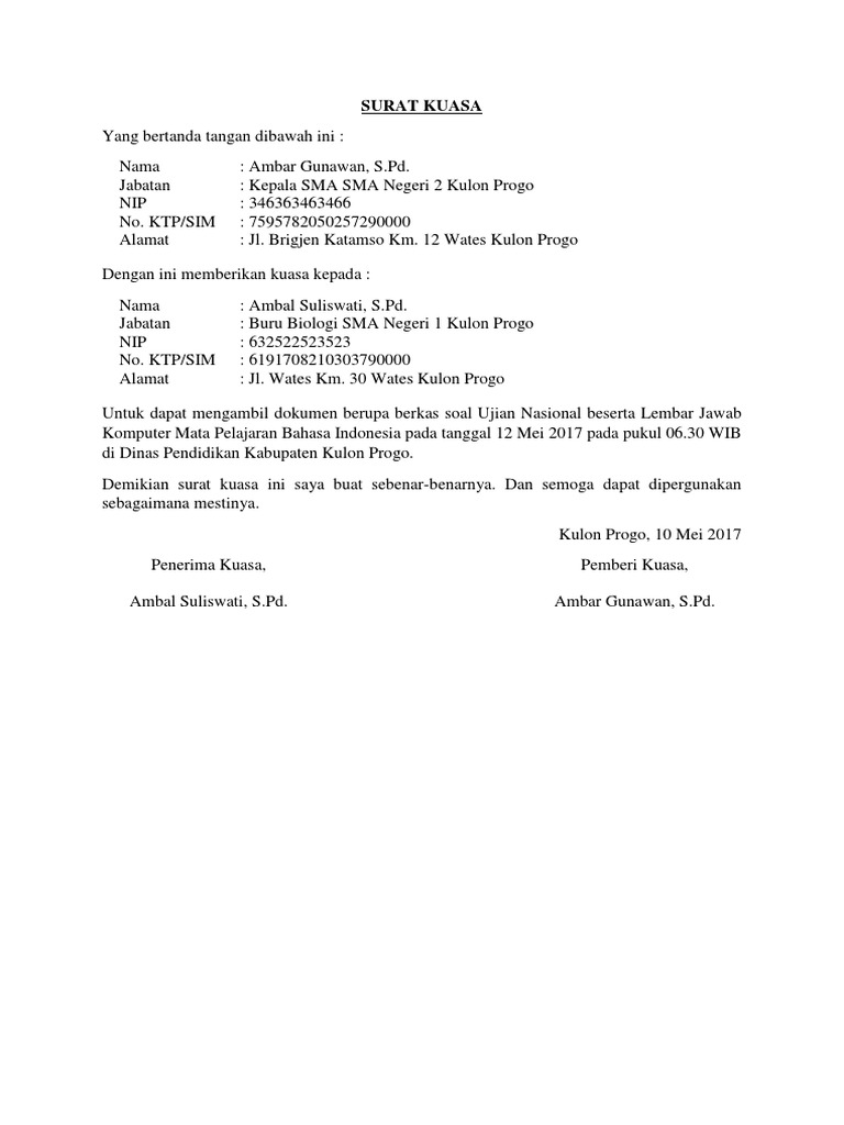 Demikian surat kuasa ini dibuat untuk kepentingan tersebut di atas dan dipergunakan sampai selesai. Contoh surat kuasa perorangan untuk pengambilan gaji. Contoh surat kuasa pengambilan gaji. Contoh surat kuasa dalam artikel ini meliputi contoh surat kuasa perseorangan, kedinasan, kuasa bank, kuasa tanah, dan misalnya, kamu ada jadwal pengambilan dokumen penting di kantor polisi, tapi kemudian kamu jatuh sakit. Pemberi kuasa adalah orang yang memiliki hak atas dokumen bpkb yang melimpahkan kuasanya kepada orang lain untuk mengambil dokumen.